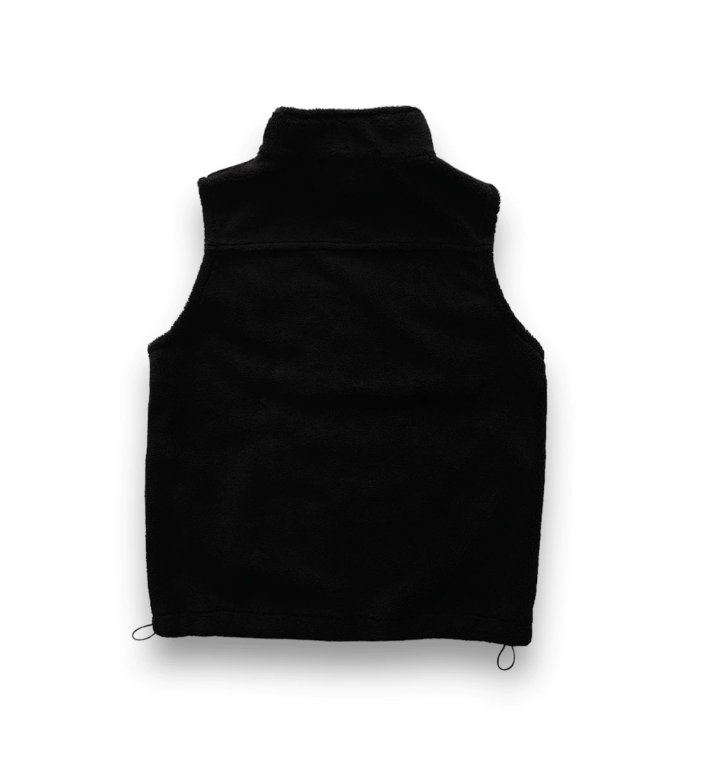 Chaleco invierno fabricado en material ovejero con bolsillos exteriores y cordon ajustable en la parte inferior.